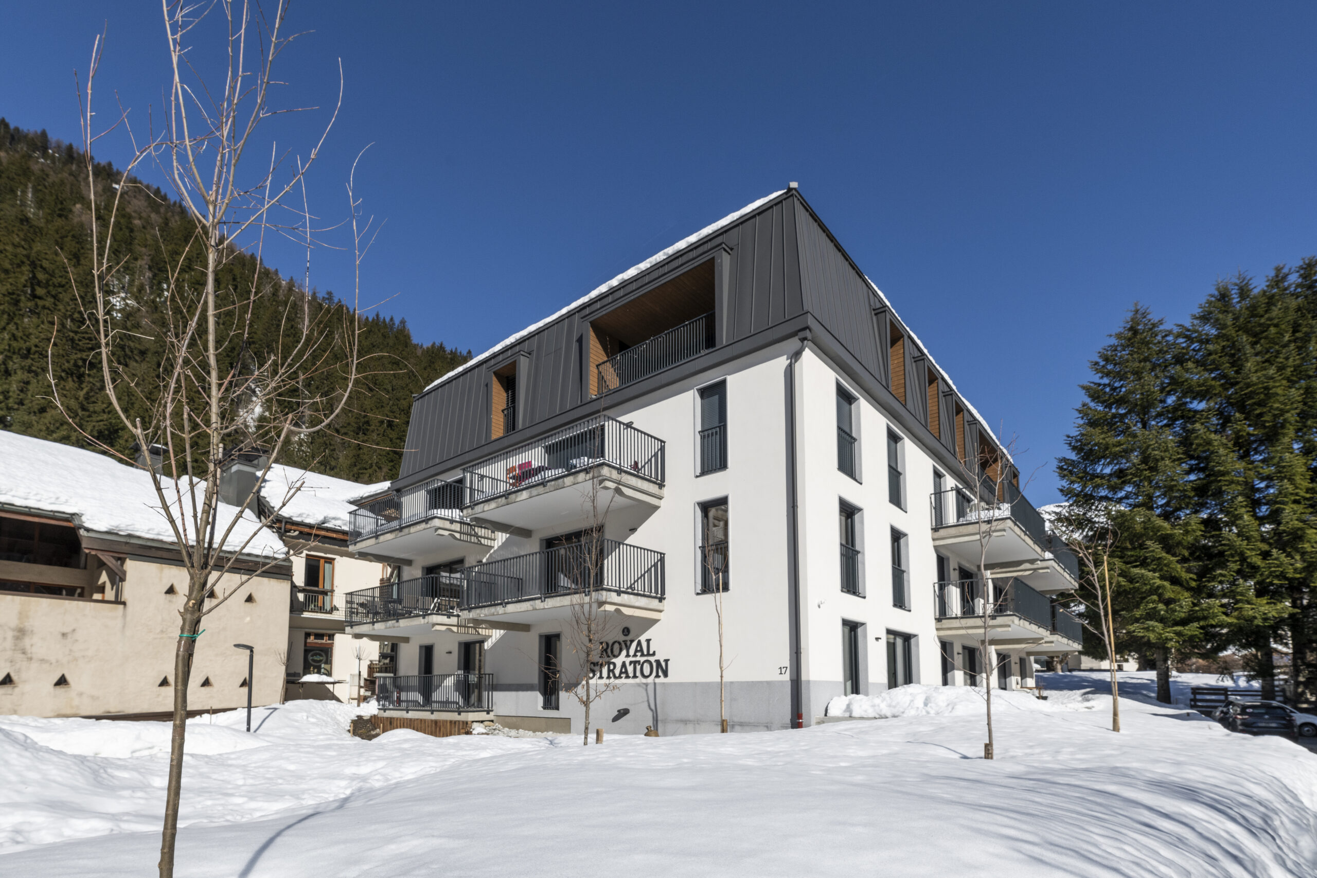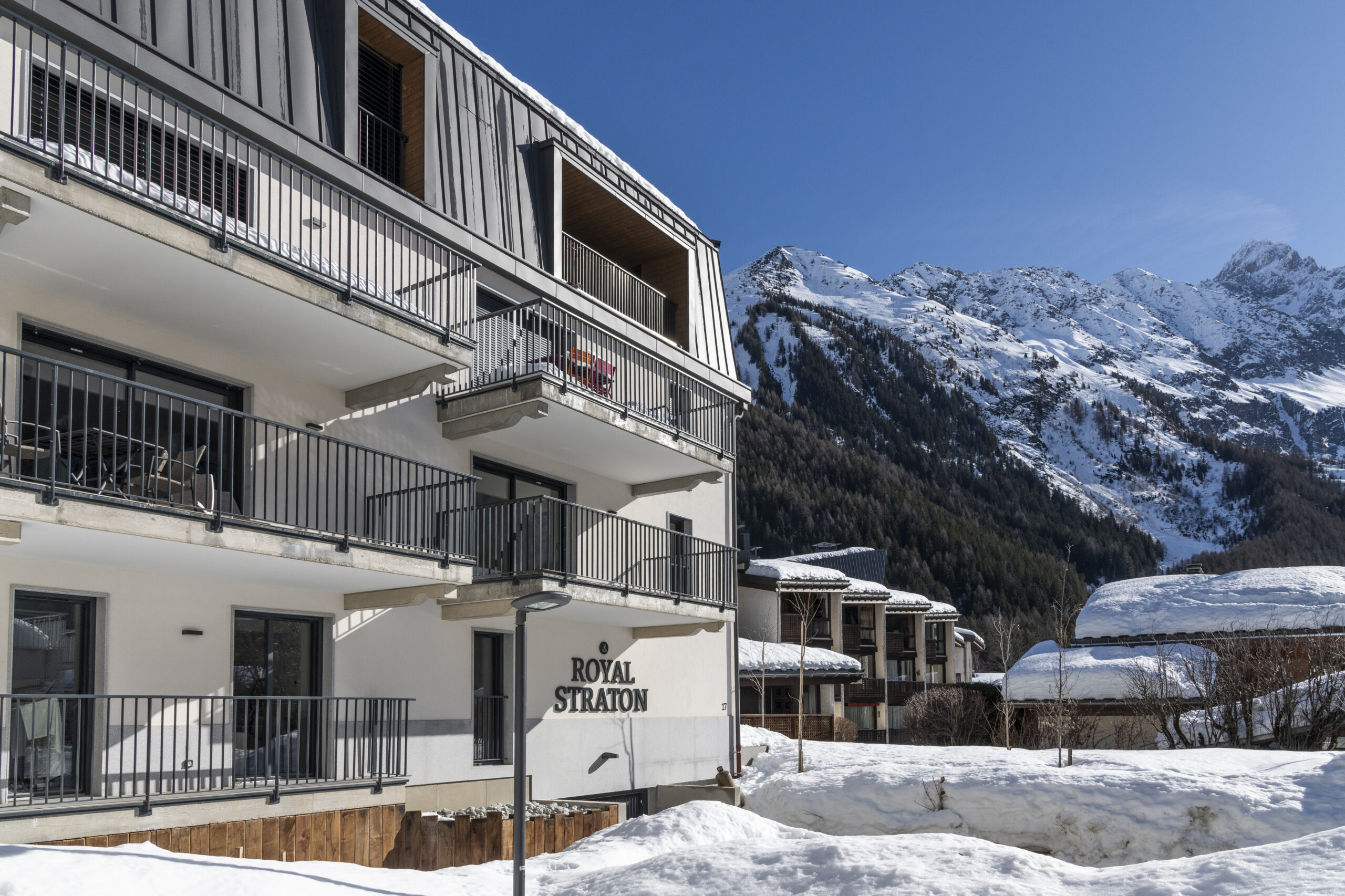 Niché Chemin de la herse, adresse confidentielle au coeur d’Argentière, Le Royal Straton se compose de 8 appartements de haut standing du T3 au T4.