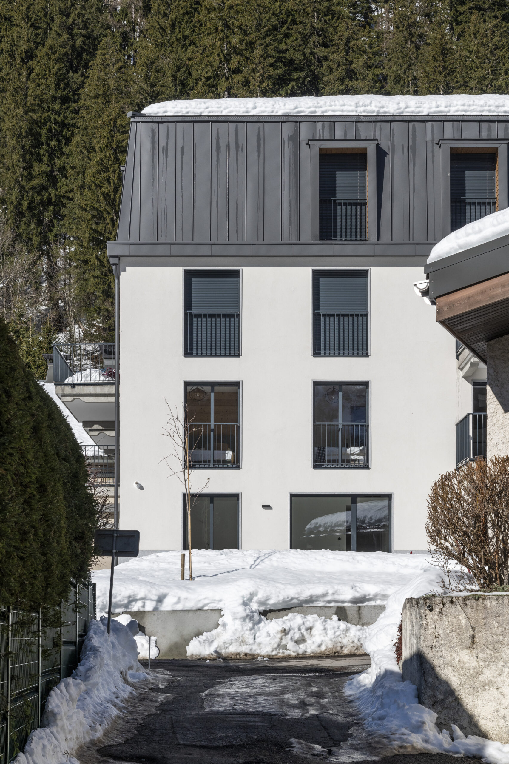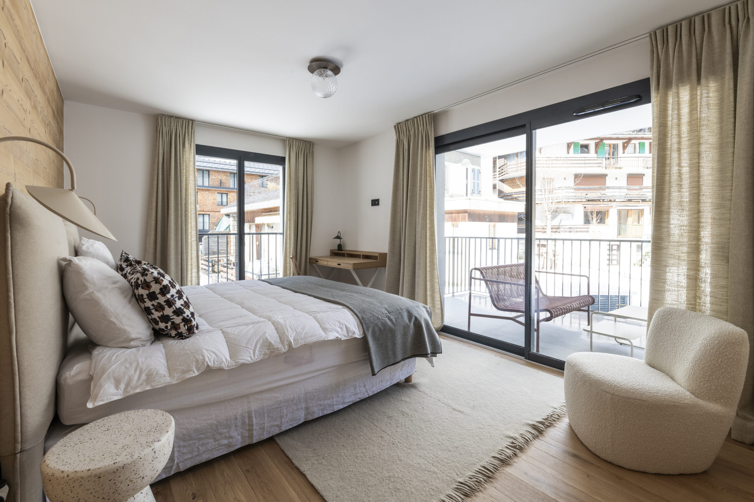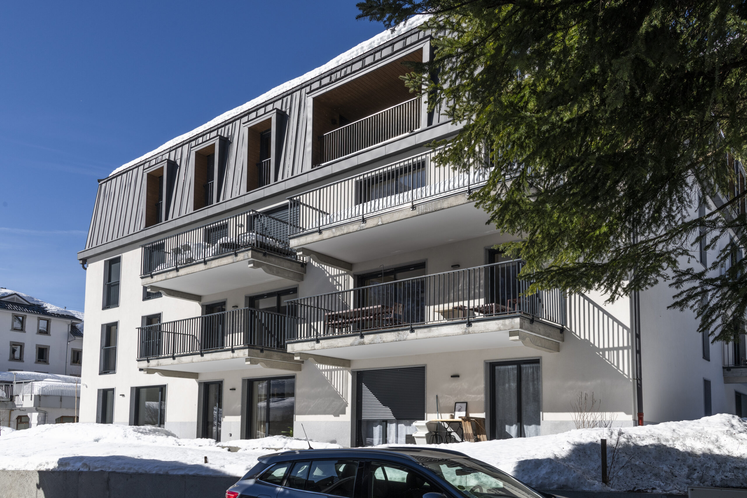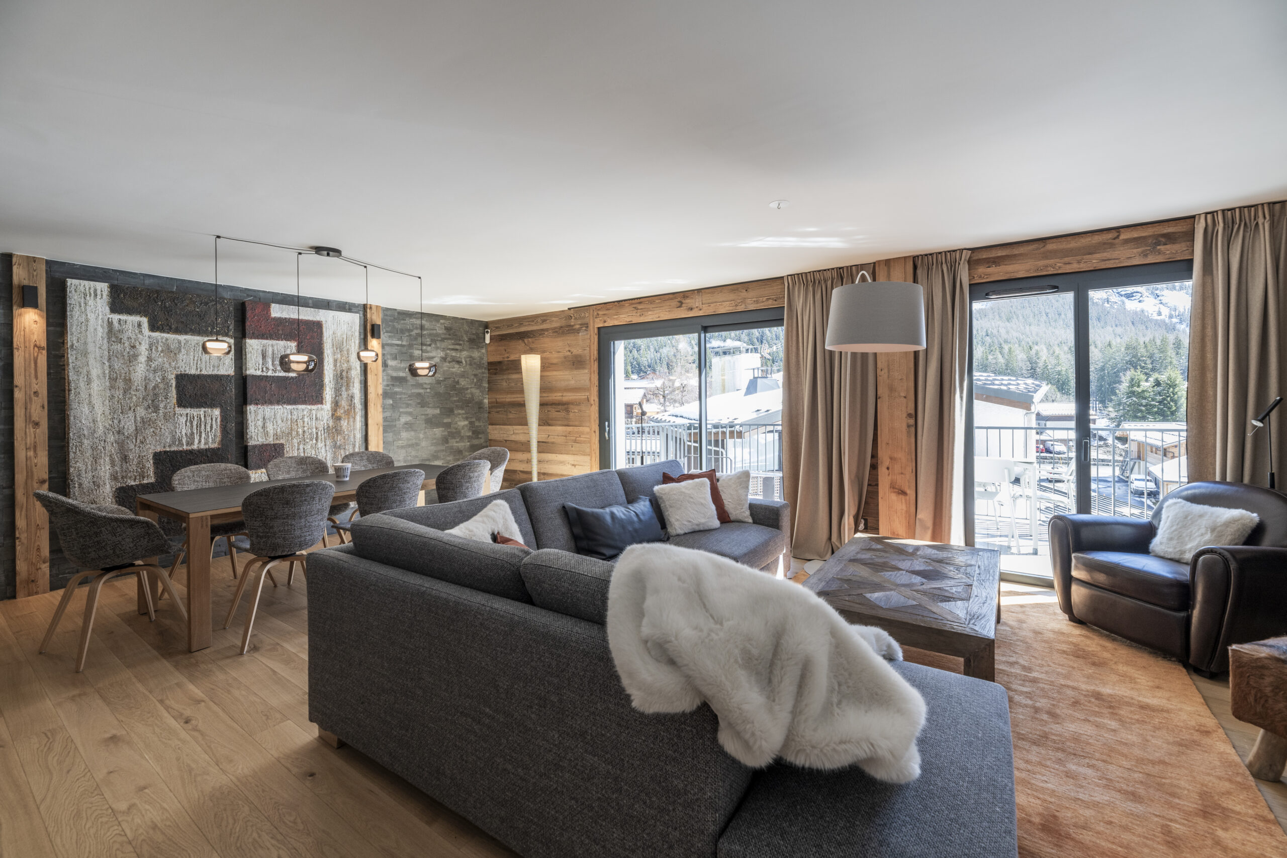Les spacieux balcons vous invitent à profiter du beau temps devant les cimes voisines. Cette bâtisse intimiste est située derrière la Rue Charlet Straton, artère principale d’Argentière.